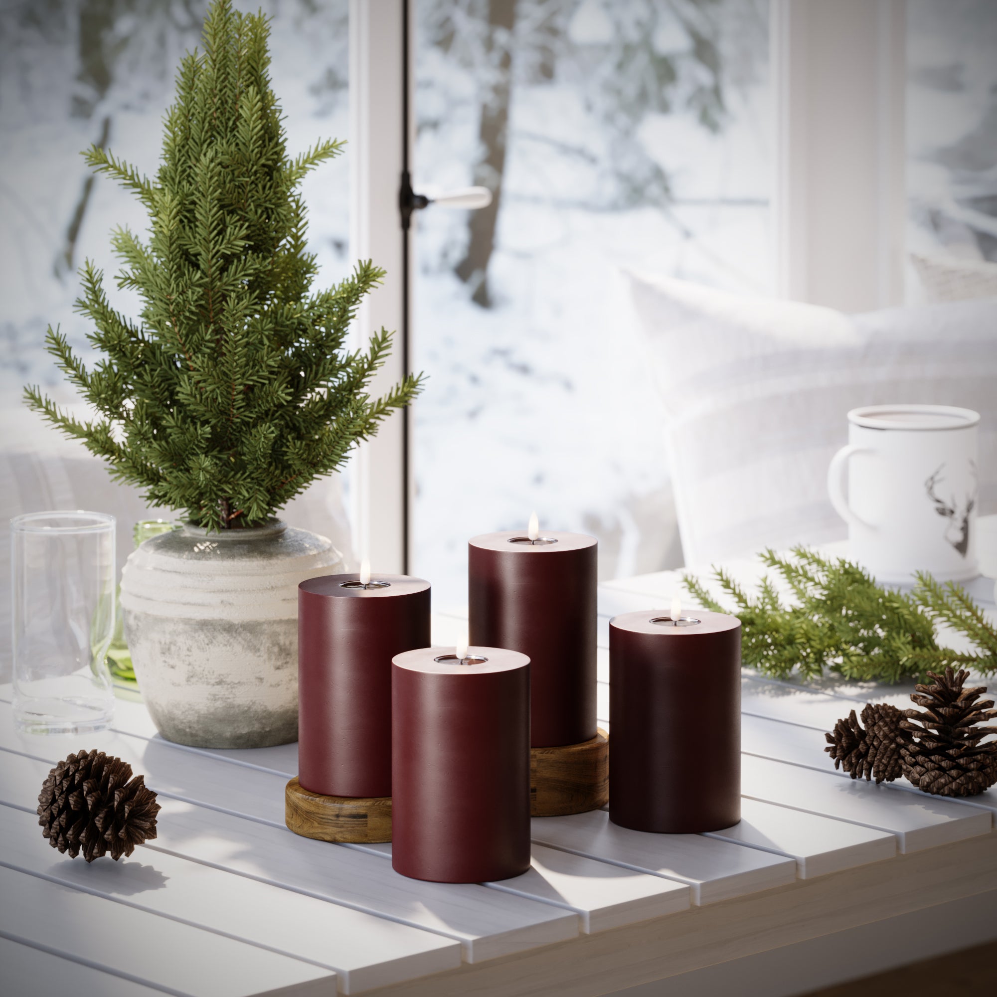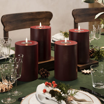 LED Pillar candle Ø 10 x 15 cm Burgundy - 4 pcs