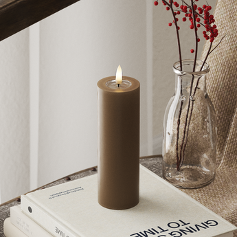 This elegant LED Pillar candle in Caramel Offers a real-life 'real flame' effect that is as lifelike as a real candle. With a height of 15 cm and a diameter of 5 cm each is LED Pillar candle Carefully made of candles & resin, equipped with a lifelike 3D flame and a unique coating of resin at the top. This particular combination not only creates an authentic feeling, but also gives the distinctive 'wet look' that mimic melted candles perfectly.