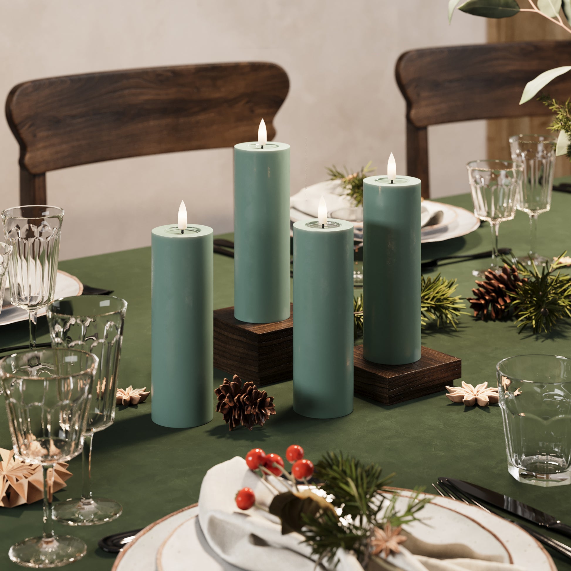 • LED Bloklys Ø 5 x 15 cm Jade Grøn + 4 stk