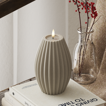 Toto elegantní vedené světlo Rill Písková Nabízí efekt „skutečného plamene“ v reálném životě, který je stejně živý jako skutečná svíčka. S výškou 15 cm a průměrem 10 cm je každá LED Rill Light pečlivě vyrobena ze svíček a pryskyřice, vybavené živým 3D plamenem a jedinečným povlakem pryskyřice nahoře. Tato konkrétní kombinace nejen vytváří autentický pocit, ale také dává výrazný „mokrý vzhled“, který dokonale napodobuje roztavené svíčky.