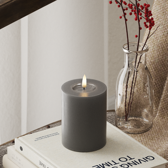 Αυτό το κομψό φως LED μπλοκ στο Γκρι Προσφέρει ένα πραγματικό αποτέλεσμα «πραγματικής φλόγας» που είναι τόσο ζωντανό όσο ένα πραγματικό κερί. Με ύψος 10 cm και διάμετρο 7,5 cm, κάθε φως μπλοκ LED είναι προσεκτικά κατασκευασμένο από κεριά και ρητίνη, εξοπλισμένη με μια ζωντανή 3D φλόγα και μια μοναδική επίστρωση ρητίνης στην κορυφή. Αυτός ο συγκεκριμένος συνδυασμός όχι μόνο δημιουργεί ένα αυθεντικό συναίσθημα, αλλά και δίνει το χαρακτηριστικό «υγρό βλέμμα» που μιμείται τα λιωμένα κεριά τέλεια.