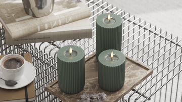 This elegant LED Shape in Sage Green Offers a real-life 'real flame' effect that is as lifelike as a real candle. With a height of 12.5 cm and a diameter of 8 cm each is LED Shape carefully made of candles & resin, equipped with a lifelike 3D flame and a unique coating of resin at the top. This particular combination not only creates an authentic feeling, but also gives the distinctive 'wet look' that mimic melted candles perfectly.